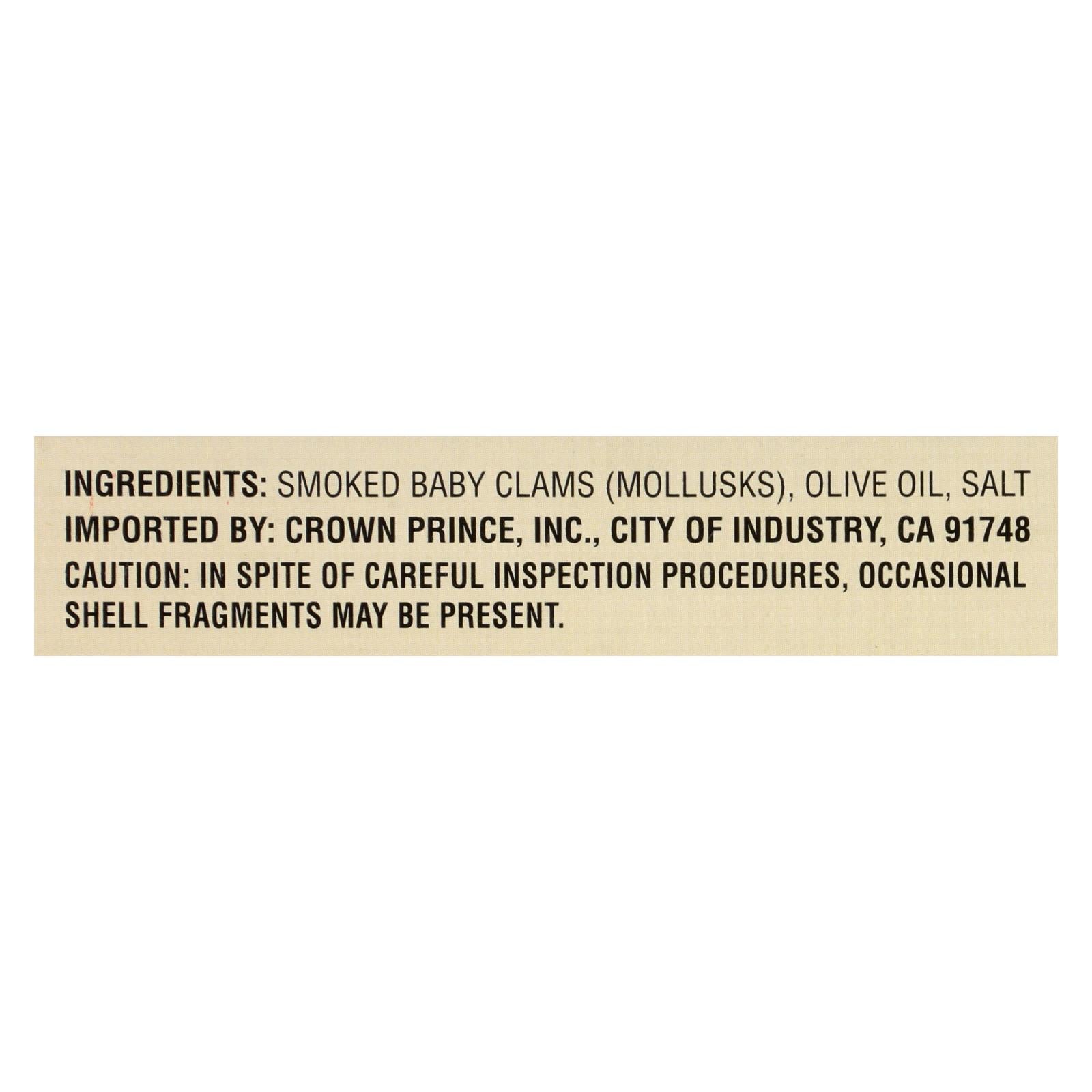 Crown Prince Clams - Smoked Baby Clams In Olive Oil - Case Of 12 - 3 Oz.