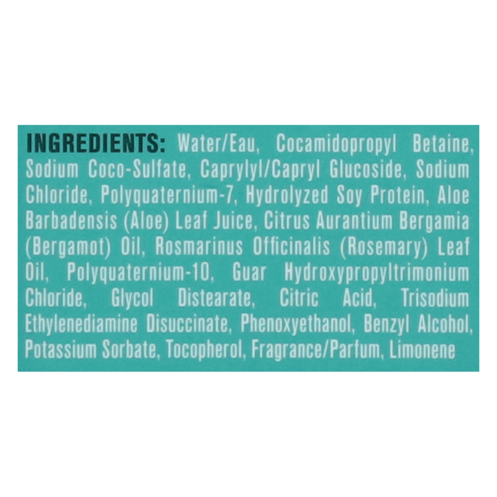 ingredients : water/eau;cocamidopropyl betaine;sodium coco-sulfate;caprylyl/capryl glucoside;sodium chloride;polyquaternium-7;hydrolyzed soy protein;aloe barbadensis (aloe) leaf juice;citrus aurantium bergamia (bergamot) oil;rosmarinus officinalis (rosemary) leaf oil;polyquaternium-10;guar hydroxypropyltrimonium chloride;glycol distearate;citric acid;trisodium ethylenediamine disuccinate;phenoxyethanol;benzyl alcohol;potassium sorbate;tocopherol;fragrance/parfum;limonene