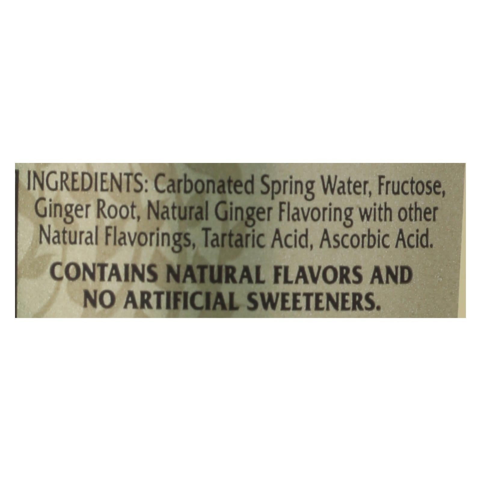 ingredients : carbonated water;fructose (fruit sugar);ginger root;natural ginger flavoring with other natural flavorings;tartaric acid;natural flavorings;ascorbic acid