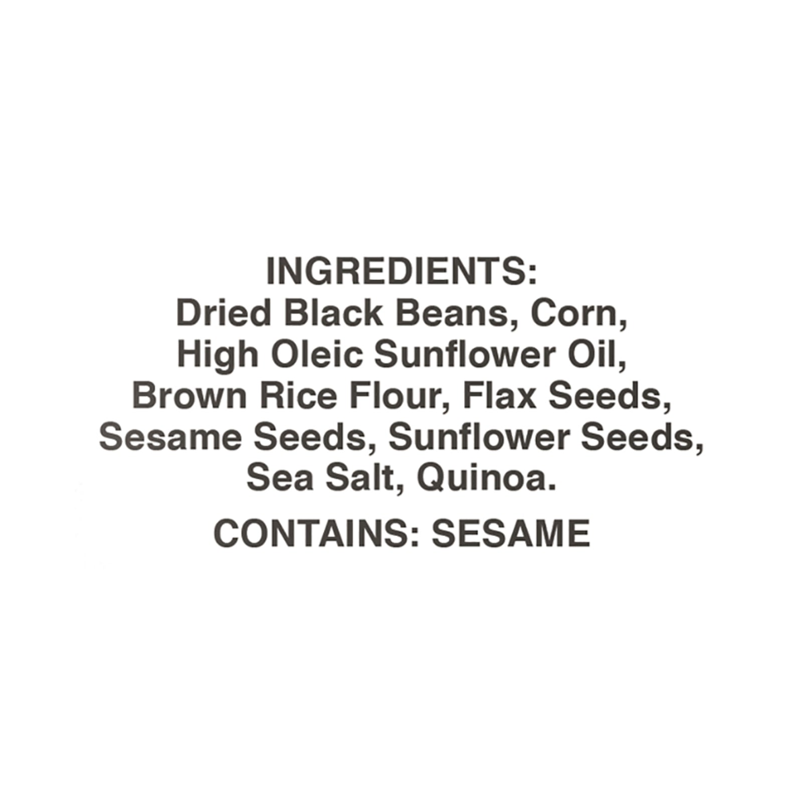 ingredients : dried black beans;stone ground corn;high oleic sunflower oil;brown rice flour;flax seeds;sesame seeds;sunflower seeds;sea salt;quinoa