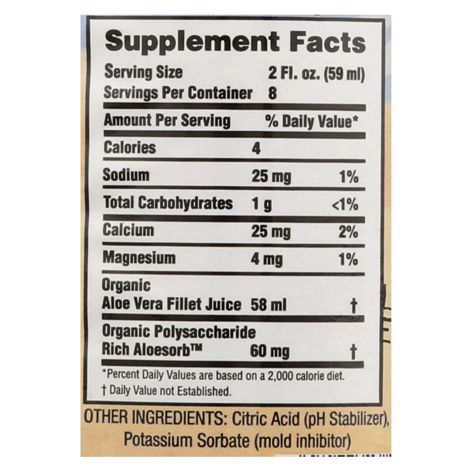 Lily of the desert aloe vera juice is made with all natural, organic ingredients including 99% aloe vera juice rich in antioxidants. One 16 oz. Bottle of lily of the desert is a kosher dietary supplement with 25 mg. Of calcium per serving to help support a healthy immune system and digestive regularity.