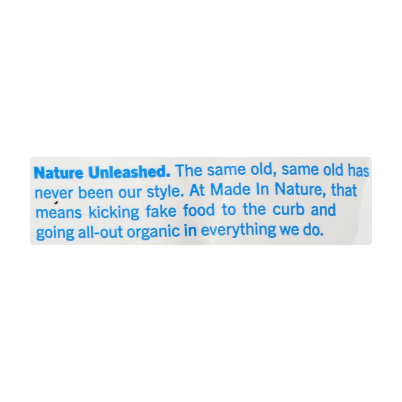 Organic dried pineapple. Organic pineapple; golden super sweet; sun-ripened; unsulfured. Usda organic. Certified organic. Certified organic by qai. Good source of fiber. Non gmo project verified. Nongmoproject.org. Non-gmo. Nothing but pineapple. Pineapple un-spiked punch: nature made pineapples prickly for a reason. It figured, hey, if i'm making something this juicy and delicious, people should have to work for it. Fair enough. But for those of you who'd rather skip the spikes, we peel and slice our plump, punchy organic pineapple so it doesn't bite back. Each piece is a killer balance of naturally sweet and tart flavors that deserve to speak for themselves. That's why we never add anything to these babies. Frankly, we see no need to mess with perfection - especially on a fruit that's born with armor and likes to fight. Ferociously fruity. Nature unleashed. The same old, same old has never been our style. At made in nature, that means kicking fake food to the curb and going all-out organic in everything we do. Madeinnature.com. Follow us (at)madeinnature. Facebook. Twitter. Instagram. Pinterest. Explore our snacks and recipes that bring real food to life at: madeinnature.com. 100% customer satisfaction call: 1-800-906-7426. Bpa free packaging. Product of costa rica.