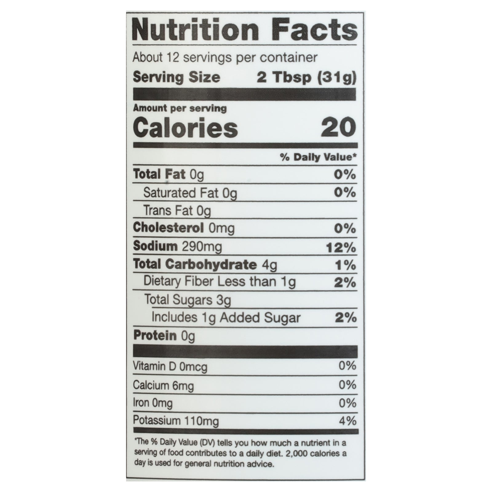 ingredients : tomato puree (water, tomato paste);apple cider vinegar;apple juice concentrate salt;paprika;onion powder;chili powder;black pepper;natural mesquite smoke flavor;garlic powder;tamarind concentrate;cayenne pepper;allspice;cloves
