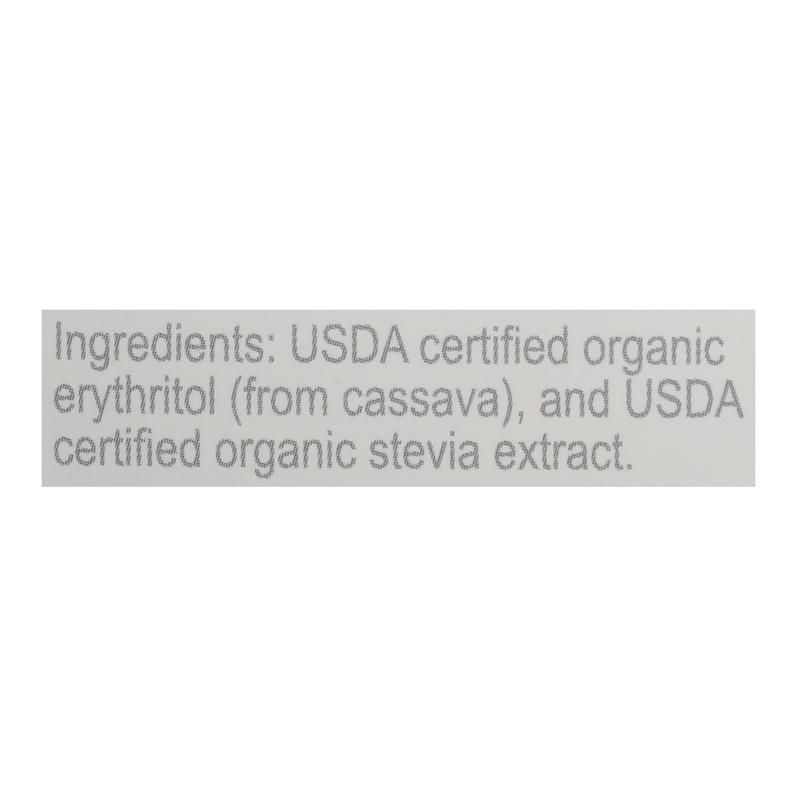 ingredients : usda certified organic erythritol and usda certified organic stevita stevia