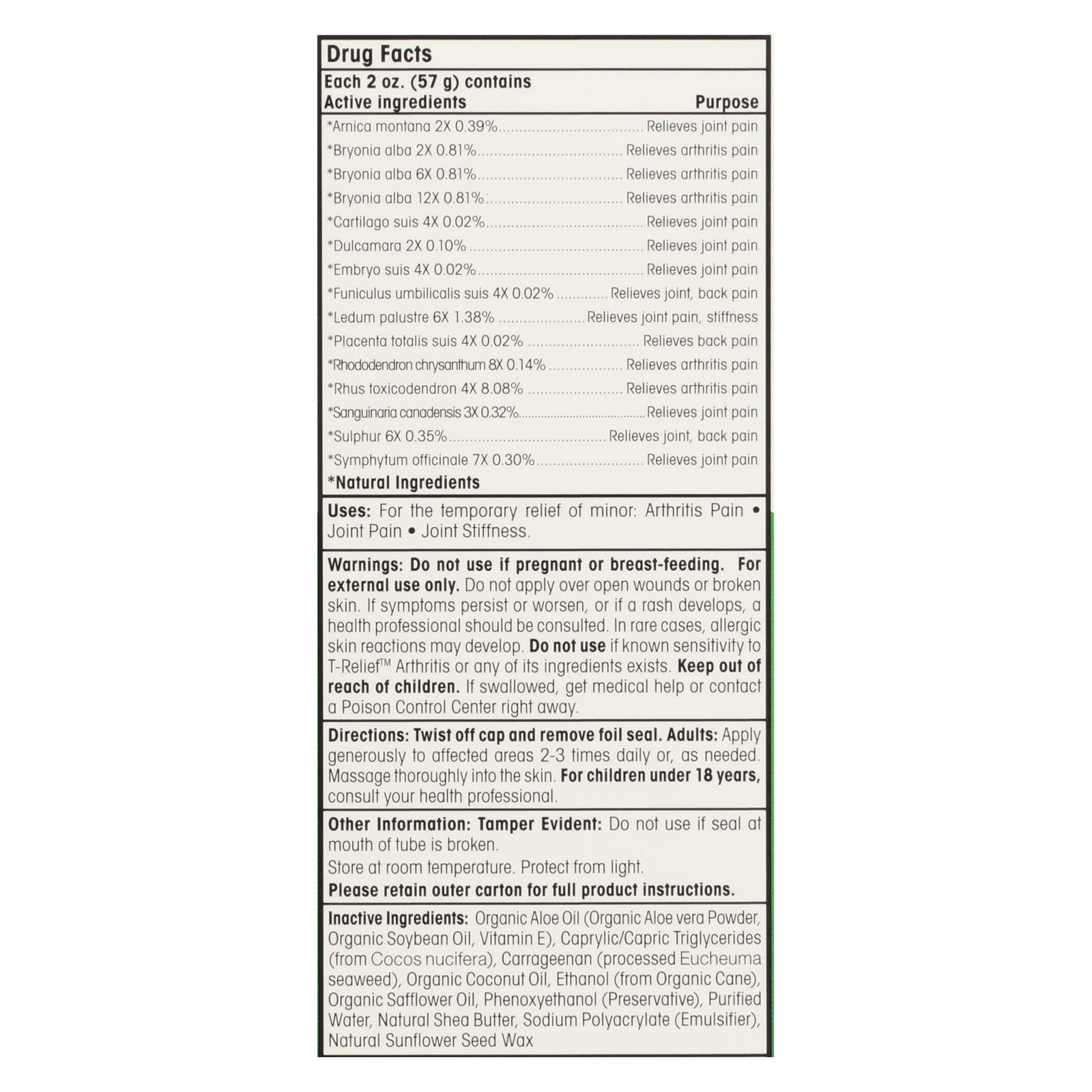 T-relief - Zeel - Arthritic Pain - Osteoarthritis - Joint Stiffness - 1.76 Oz